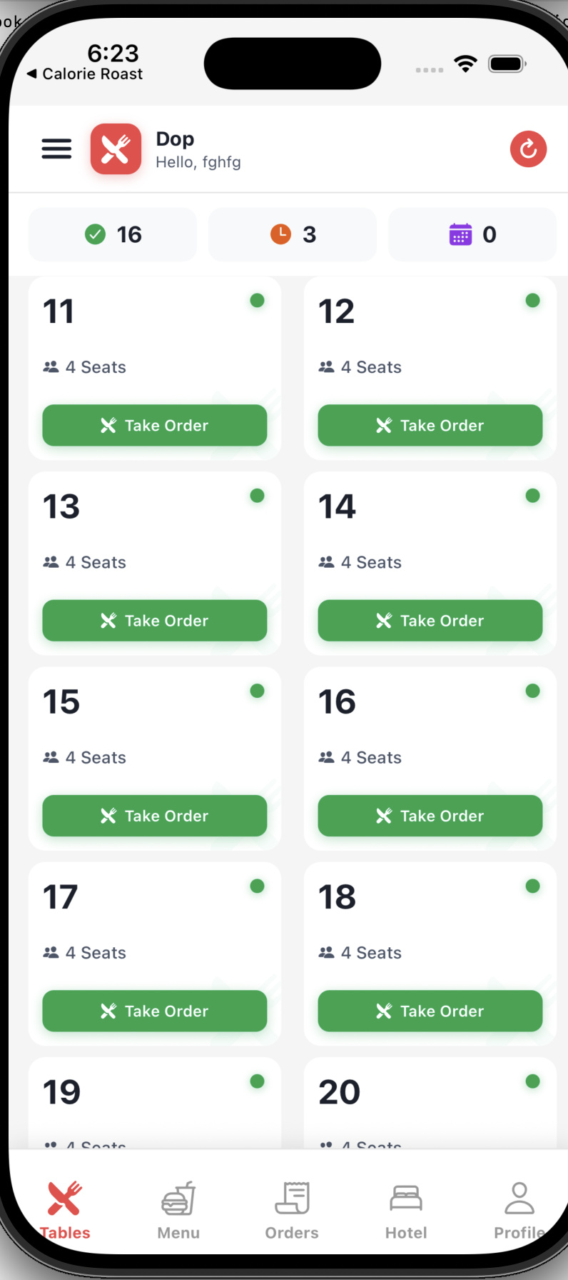 Give each waiter their own app on their phone. They can take orders tableside, send KOTs to the kitchen instantly, and manage their assigned tables — all without walking back to the billing counter.